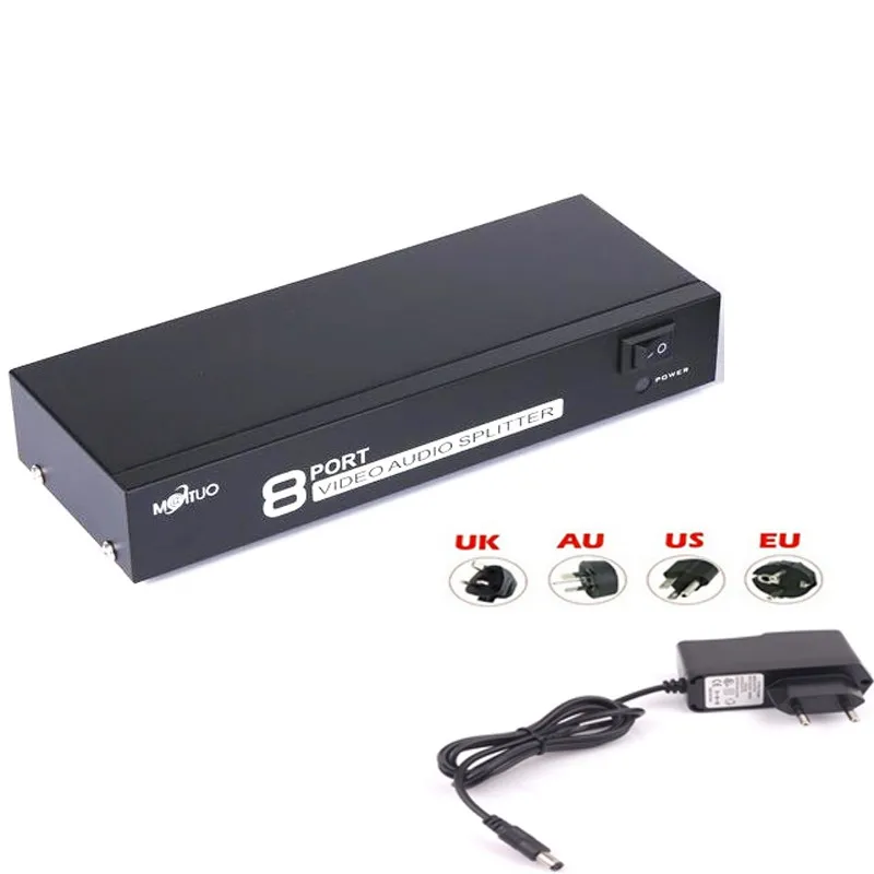 Répartiteur audio vidéo Composite RCA AV 8 ports 1X8 avec adaptateur secteur
