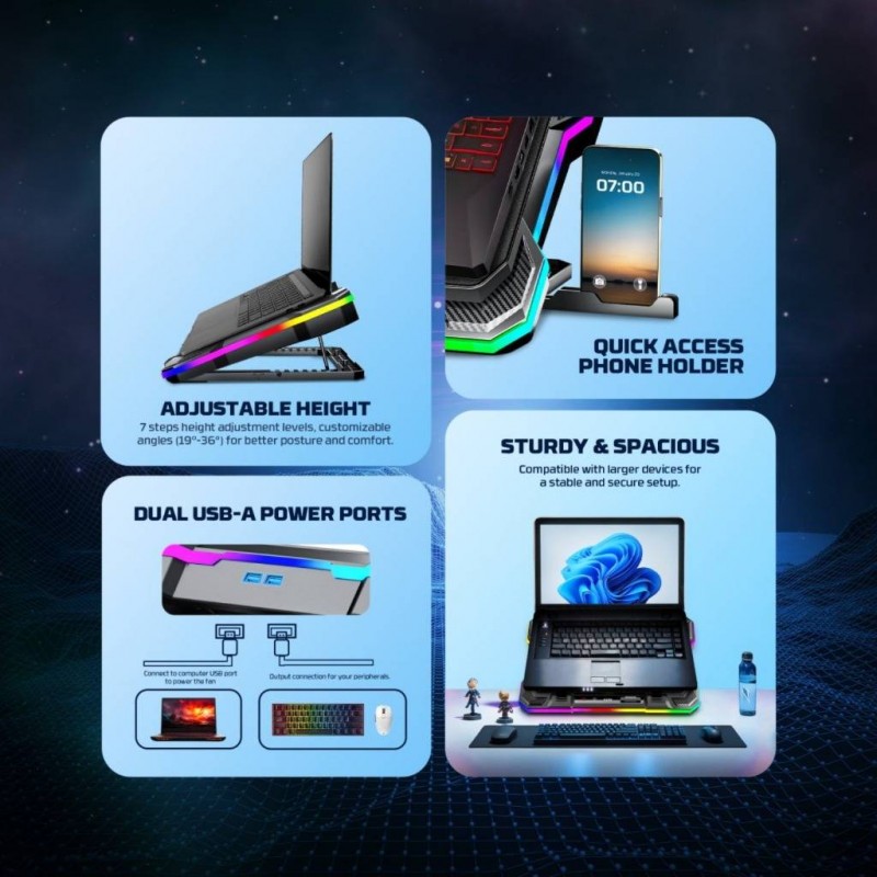 Elevate your gaming and work experience with the FANTECH NC22-BLACK RGB Laptop Cooler
